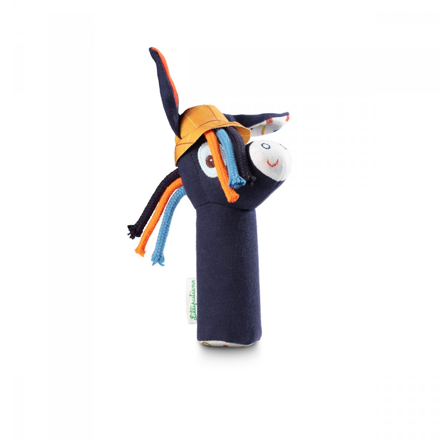 Un orsetto di peluche con un anello sonaglio, realizzato con materiali di alta qualità, dall’azienda francese Moulin Roty. Il classico primo gioco per intrattenere i più piccoli.